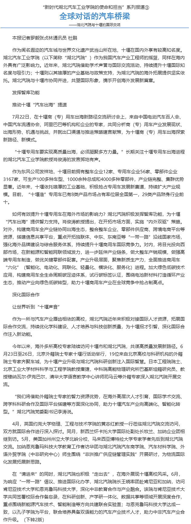 全球对话的汽车桥梁——湖北汽院与十堰的国际交响